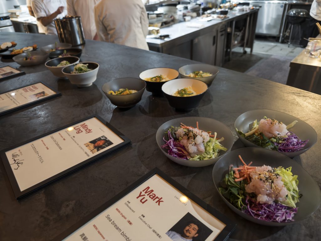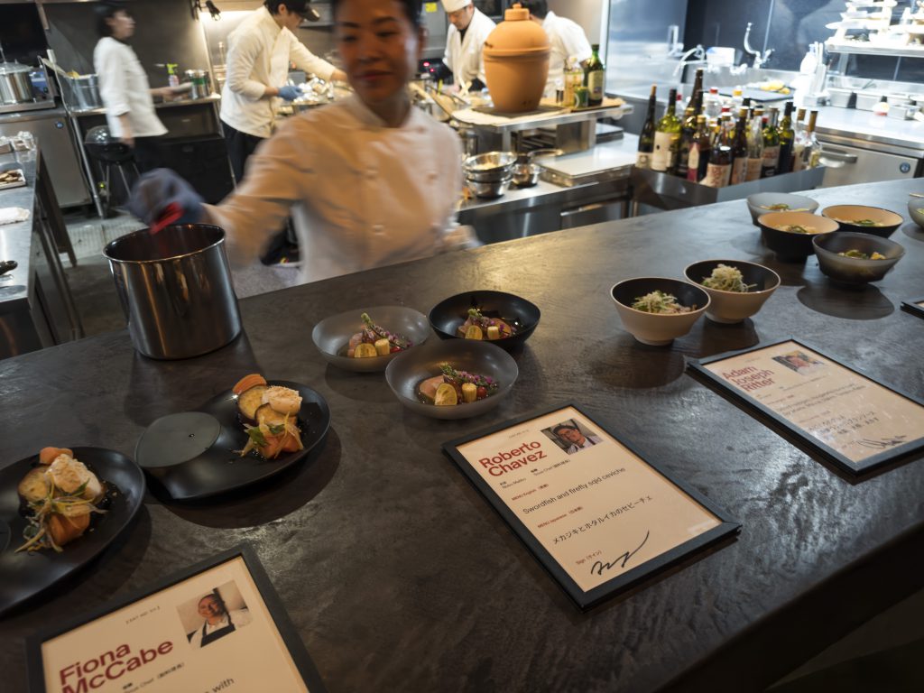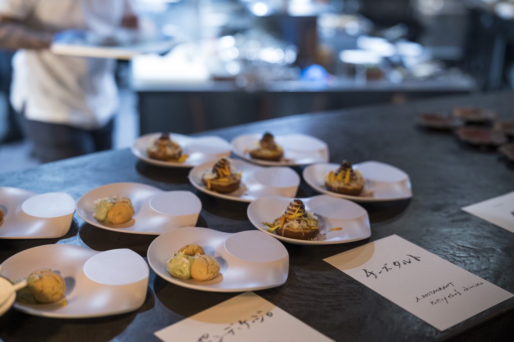 ジャパニーズ・トラディショナル&ペルー、フレンチ、コンテンポラリー・アジアン、NYスタイル・イタリアン&フレンチなど、それぞれのシェフがそれぞれのバックグランドや感性を活かした作り上げた料理が、シェフのプロフィールとともに、通常はA__RESTAURANTの6席限定のコース料理で使われているオープンキッチンのカウンターに並べられました。