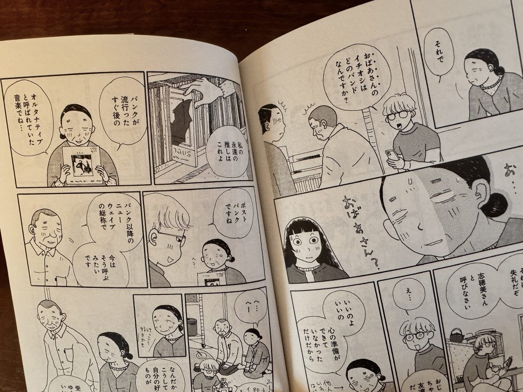 そこでさとこが見たのは、音楽好きな男性が連れてきた孫と音楽の話が共有され受け継がれていく光景である。志穂美さんがホットケーキミックスで作った「チョコチップあんこケーキのナッツのせ」を4人で食べながら時間が流れる。